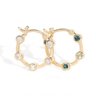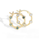 These double-sided hoop earrings feature a bezel-set diamond on one side and multi-green sapphires on the other. Designed for versatile styling, the reversible hoops allow you to switch between classic diamond sparkle and vibrant green color. Perfect for everyday wear, these diamond and sapphire hoop earrings offer a modern, playful take on hoop earrings.